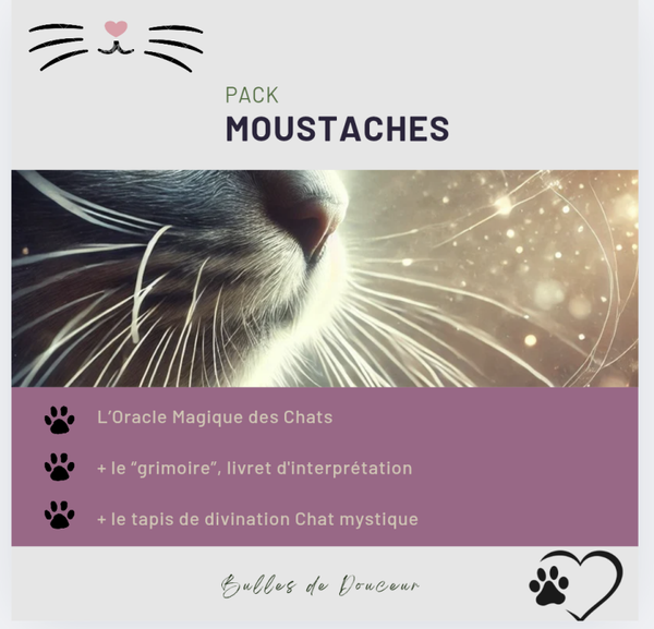 🐾 Pack MOUSTACHES : L'Oracle (cartes + sac en tissu) + le tapis de divination Chat mystique.